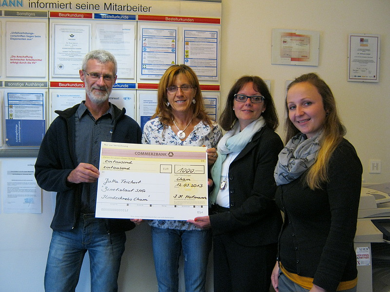 Die Organisatoren des Benefizlaufs Jutta Teichert und Christian Pietsch freuten sich sichtlich bei der Scheckübergabe und bedankten sich herzlich beim Hofmann-Team sowohl für die Spende, als auch für das große Engagement.