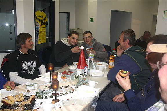 So wurde das Büro weihnachtlich dekoriert und ein Buffet mit verschiedenen Salaten und deftigen Beilagen wartete mit Stollen und allerlei Süßem darauf, von den Mitarbeitern verspeist zu werden. Gerne sind die Kollegen dieser Einladung gefolgt, entweder um sich vor ihrer Schicht noch zu stärken oder beschaulich ihren Feierabend einzuläuten.