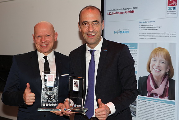 Da Hofmann Personal kontinuierlich zu den besten Arbeitgebern zählt, erhielt das Unternehmen zusätzlich den Platin Trust Champion Award.