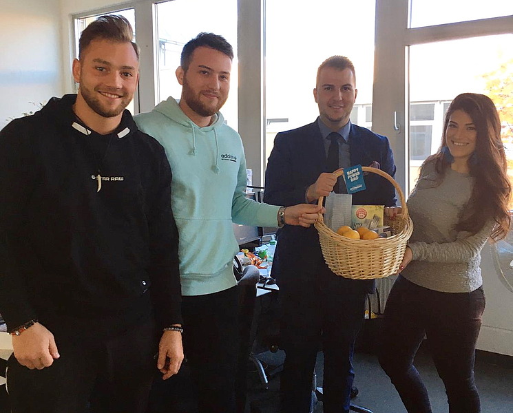 „Jetzt kommt die Jahreszeit, in der man verstärkt auf seine Gesundheit achten und das Immunsystem stärken sollte“, weiß Personaldisponent Tobias Iberl. „Dabei unterstützen wir unsere Mitarbeiter und Kunden mit allerlei nützlichen Kleinigkeiten, wie zum Beispiel mit wichtigen Vitaminen und Mineralstoffen“, ergänzt seine Kollegin Personaldisponentin Sarah Seiler. Und so finden sich in dem Körbchen mit dem passenden Namen „Happy Power Bag“ neben frischen Äpfeln und Clementinen auch Tee, Zink und Magnesium, praktisch und handlich im Kleinformat.
