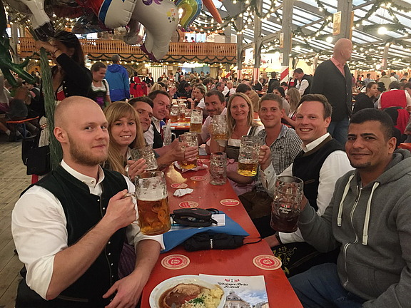 September 17 – Einmal Danke schön sagen für eine wirklich tolle Zusammenarbeit. Was bietet sich da mehr an, als ein gemeinsamer Besuch des Herbstfests, zu dem das Niederlassungsteam die Kollegen einlud? Und da die Mitarbeiter sich durch ihre unterschiedlichen Einsätze selten sehen, nutzten sie die Gelegenheit, sich ausgiebig auszutauschen. Hendl und die Maß Bier schmeckten prima und wie man im Nachhinein erfuhr, zog sich bei dem einen oder anderen der Abend noch mächtig in die Länge …