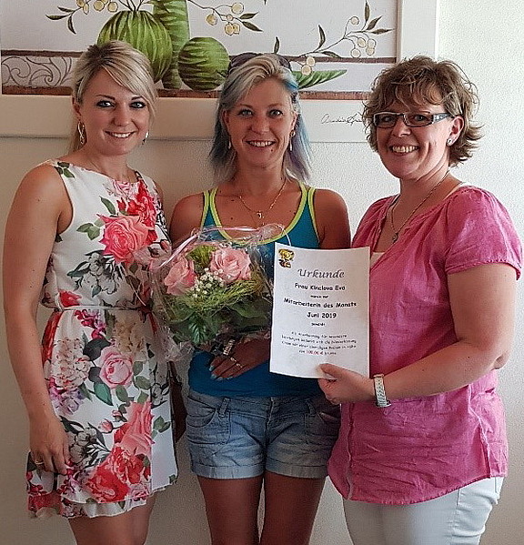 Juni2019 – Sie gilt als sehr zuverlässig und fleißig und wird von ihren Kollegen sehr geschätzt – Eva Kinclova. Darum wurde sie Mitarbeiterin des Monats. Mit einer Urkunde und einem schönen Blumenstrauß überraschten wir sie und bedankten uns für eine tolle Zusammenarbeit.