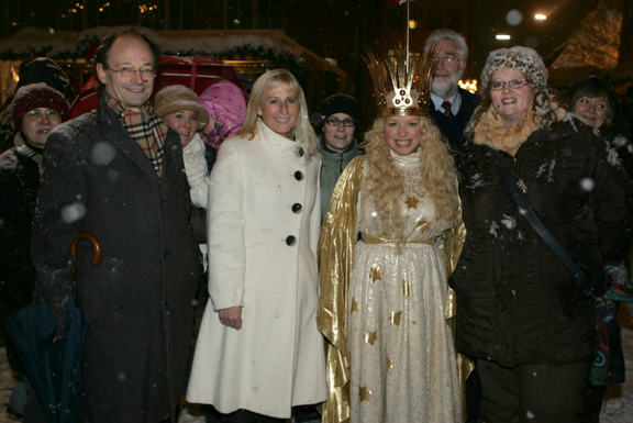 Dezember 2010 – Geld, das man spenden möchte, muss zunächst einmal erwirtschaftet werden. Erfreulicherweise war 2010 ein Aufschwungjahr, was sich entsprechend positiv auf die wirtschaftliche Lage der Unternehmen ausgewirkt hat. Zum Hofmann-Jubiläumsjahr waren Kunden und Geschäftspartner gerne bereit, anstelle von Geschenken ein wenig zu spenden. Hinzu kamen die Honorare, die Ingrid Hofmann für ihre Vorträge erhält, so dass in diesem Jahr wieder eine ansehnliche Summe für INTACT, Internationale Aktion gegen die Beschneidung von Mädchen und Frauen e.V zusammen kam. Schirmherin Christa Müller kam nach Nürnberg zum Christkindlesmarkt, zu dem wir unsere Mitarbeiter für ein Fototreffen mit dem aktuell amtierenden Christkind eingeladen hatten und übernahm dort aus den Händen der „Hofmann-Azubis“ die Spende.