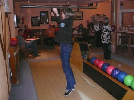Dezember 08 – „Sicherlich wird es momentan schwieriger“, meint Niederlassungsleiterin Annelies Fischer. „Doch wir haben schon manche Herausforderung gestemmt und werden mit unseren Kunden auch weiterhin Lösungen finden.“ Als Dankeschön für die gute Zusammenarbeit traf man sich zum Bowlen. Nach einem zünftigen Menü mit Gänsekeule oder Hirschbraten, wurden die Kalorien auf der Bowlingbahn wieder abtrainiert.