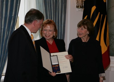 Juni 07 Es ist nicht üblich, dass der Bundespräsident persönlich den Verdienstorden übergibt. Doch dieses Jahr machte er eine Ausnahme, denn am 21. Juni wurden ausschließlich Frauen für ihre Verdienste ausgezeichnet. „Mir liegt sehr viel daran, auf Maßstäbe in unserer Gesellschaft aufmerksam zu machen, die vielleicht erklären können, warum noch immer weit weniger Frauen als Männer für eine Auszeichnung mit dem Verdienstorden vorgeschlagen werden. Zwar ist der Anteil der Ordensträgerinnen seit 1990 von 16 auf 25 Prozent angestiegen. Doch gemessen am Anteil der Frauen an unserer Bevölkerung und an ihrem vielfältigen Engagement ist das immer noch viel zu wenig! Deswegen nehme ich seit Oktober letzten Jahres Vorschlagslisten nur noch an, wenn von zehn Kandidaten mindestens drei Frauen sind“, so Horst Köhler in seiner Rede.