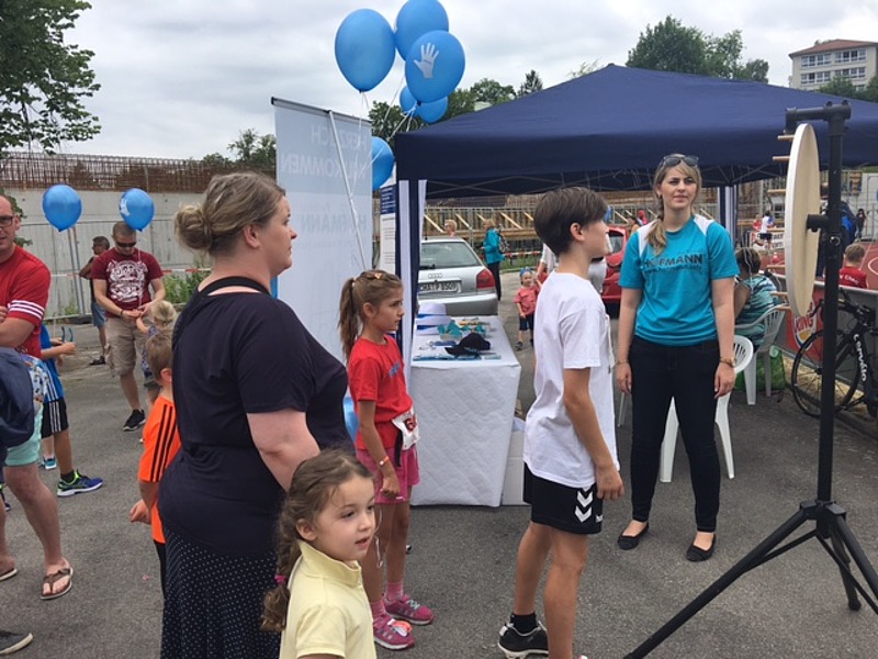 Juni 17- Mit einem Stand, einem Gewinnspiel und bunten Luftballons für die jungen Teilnehmer war das das Hofmann-Team beim Chamer Stadtlauf dabei. „Auch wenn wir diesmal nicht gelaufen sind, wollten wir dieses Ereignis unterstützen“, sagt Büroverantwortliche Christina Wingenfeld.