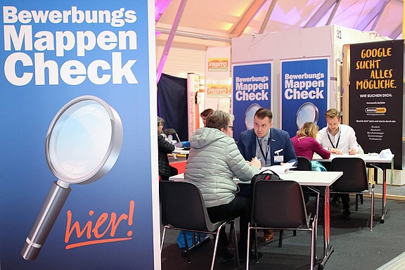 Darum bieten wir nicht nur auf Messen, sondern auch in unserer Niederlassung jedem Interessierten an, seine Bewerbungsmappe von uns checken zu lassen. Mit geschultem Blick prüfen wir Lebensläufe, Anschreiben und sonstige Bewerbungsunterlagen, um den Mappen den letzten Feinschliff zu geben. Natürlich haben wir auch Tipps parat, wie man ein gutes Bewerbungsgespräch führt und informieren darüber, was Personaler oftmals erwarten.