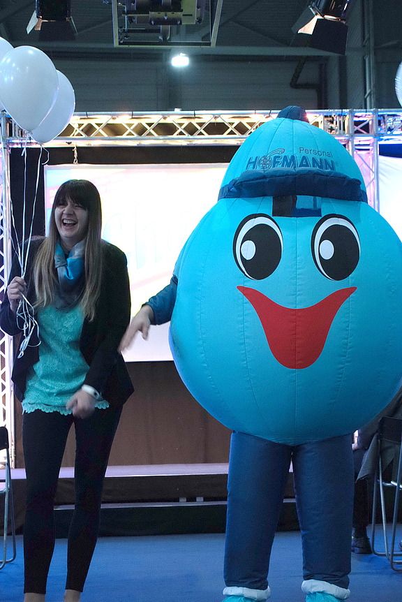 Und damit wir auf der regionalen Messe „Chance 2017“ auch wirklich auffielen, wurde das Hofmann-Team von unserem Maskottchen Jobby begleitet, der manche Blicke auf sich zog und für gute Laune sorgte.