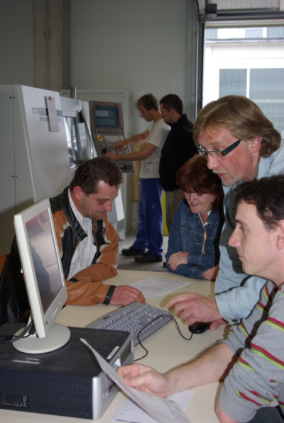 Seit März bilden sich Mitarbeiter aus Eisenach mit Hilfe des WEGEBAU-Programms fort. Da alle Mitarbeiter bereits ähnliche Maschinen bedient haben und regelmäßiges arbeiten gewohnt sind, bringen sie gute Voraussetzungen mit, um die Kurse erfolgreich abzuschließen. „Man merkt das echte Engagement bei den Hofmann-Mitarbeitern“, stellt ein Ausbilder fest. „Wir nutzen jede Chance, die sich uns bietet, um unsere Mitarbeiter halten zu können“, ergänzt Niederlassungsleiter Bernd Spillner aus Eisenach.