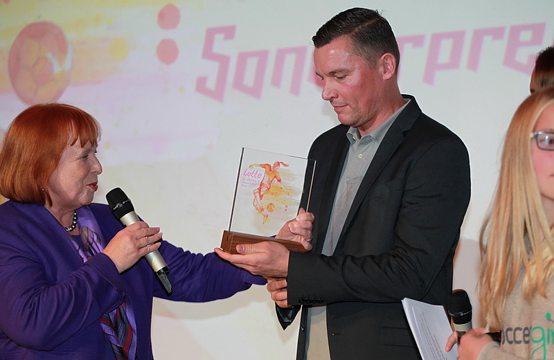 Unseren Hofmann Personal Sonderpreis erhielt der Fußball- und Leichtathletikverband Westfalen (FLVW) Kreisverband Herford, vertreten durch Holm Windmann. Er organisiert seit 2011 in seinem Landkreis eine Grundschul-EM, an der in diesem Jahr 300 Nachwuchs-Kickerinnen teilnahmen. Auch so lässt sich Fußball-Begeisterung fördern! Unser Preis enthält das Versprechen, dass das EM-Siegerteam von 2018 nächstes Jahr als Einlaufkinder bei der Spielvereinigung Greuther Fürth einen tollen Tag erleben darf.