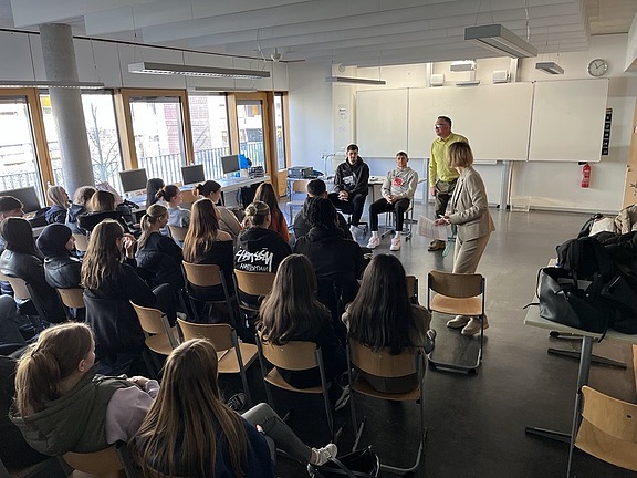 In den zwei Doppelstunden mit einmal zwei und einmal einer Klasse, entwickelte sich jeweils eine rege Diskussion rund um den Begriff „Fairness“, angefangen bei fundamentalen Fragen wie „Was bedeutet Fairness überhaupt?“ oder „Ist Fairness objektiv messbar?“. Leo Saffer und Vincent Friederici konnten hier immer wieder interessante Beispiele aus ihrem Leben als Basketballer nennen, bei denen unterschiedliche Sichtweisen zu Fairness oder fairem Umgang aufeinanderprallten und das nicht selten zu Konflikten führte. Die Schülerinnen und Schüler beteiligten sich engagiert und proaktiv an dem Austausch, stellten Fragen und stellten ihre Sichtweisen auf das Thema dar. Beide Einheiten wurden jeweils erst durch die Schulglocke beendet und hätten sicher noch länger dauern können.