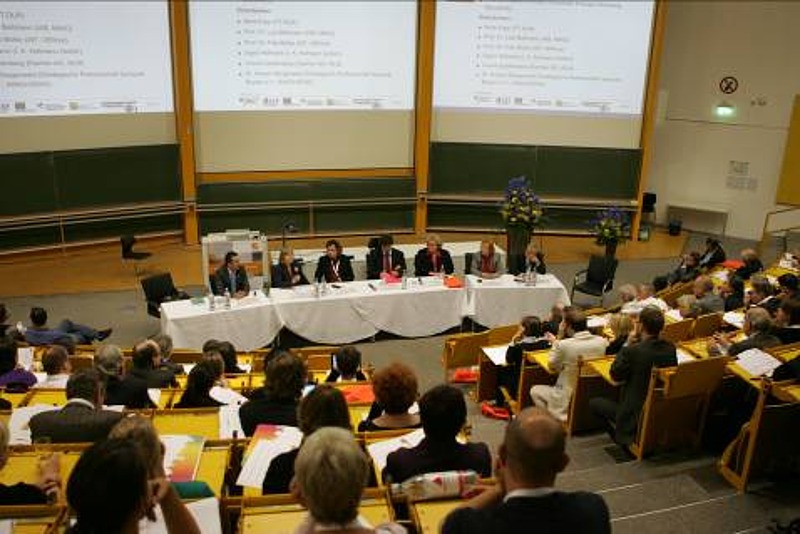 An der Diskussionsrunde nahmen teil: Prof. Lutz Bellmann (IAB, Volkswirt Arbeitsökonomie), Prof. Fritz Böhle (Soziologe), Ilona Kopp (Vertreterin des Projektträgers DLR), Dr. Hubert Steigerwald (Strategische Partnerschaft Sensorik e.V.) und Ursula Spellenberg (Leiterin Arbeitsschutz- und Gesundheitsmanagement der Daimler AG). In ihrem Statement machte Frau Hofmann noch einmal deutlich, dass es sich bei Zeitarbeit um keine prekäre Beschäftigung handelt. Wenn man sie allerdings als atypisch bezeichnet, könne sie noch damit leben. Auf die Frage, was sie von diesem Forschungsprojekt erwarte, antwortete sie: „Die Forschungsergebnisse sollten so verfasst werden, dass Praktiker einen schnellen Zugang dazu finden und auch wirklich davon profitieren können.“