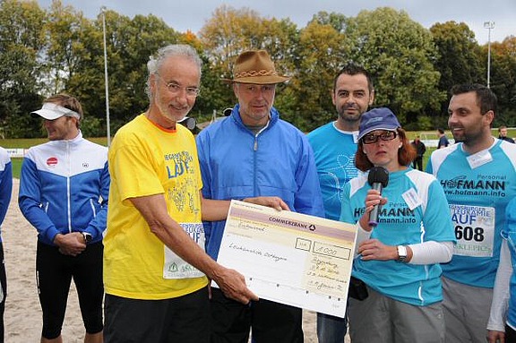 „Je mehr Hofmann-Mitarbeiter und Kunden teilnehmen, umso größer wird die Spendensumme, welche wir im Rahmen unseres Hofmann-Spendenmarathons „ersporteln“, freut sich Alexandra Bencinic. Denn mit jeder Anmeldung fließen 50 Euro auf ein eigens dafür eingerichtetes Spendenkonto. Am Ende des Jahres wird das gesammelte Geld den Niederlassungen zur Verfügung gestellt, die es einer sozialen Einrichtung ihrer Wahl spenden. So standen in 2011 satte 1000 Euro zur Verfügung, die an Prof. Dr. Reinhard Andreesen, 1. Vorsitzender der Leukämiehilfe Ostbayern, übergeben werden konnten. Durch diese Gelder konnte die Versorgung der Patienten in der Region nachhaltig mit verbessert werden.