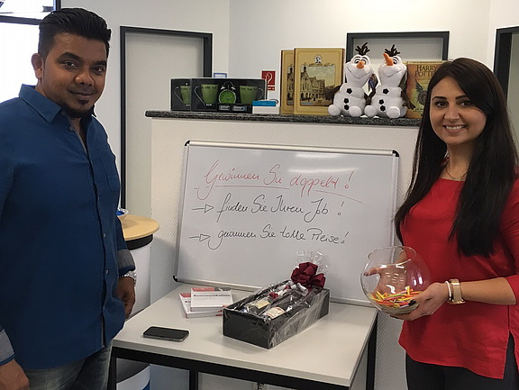 Informiert haben sich auch Fernando Sumal, der sich für eine Arbeit in der Produktion interessierte und die Redakteurin Susanne Obigt, inwiefern für sie Zeitarbeit oder eine direkte Vermittlung attraktiv sein könnte. Ganz nebenbei hatten sie noch Glück beim „Lose ziehen“ und konnten sich über eine Power Bank und ein Buch freuen.