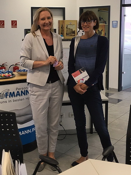 Juni 17 - „Nach wie vor schwirren so viele Urteile und Vorurteile über unsere Branche herum, dass es unbedingt notwendig ist, immer wieder dazu einzuladen, sich direkt mit uns auszutauschen“, sagt Niederlassungsleiterin Gabriele Jakob. „Wir müssen jeden einzeln betrachten, seine Ausbildungs- und Lebenssituation – dann können wir beurteilen, inwiefern wir unterstützen bzw. einen Job anbieten können oder auch nicht. Dabei ist es egal, ob über Arbeitnehmerüberlassung oder direkte Vermittlung in ein Unternehmen“, ergänzt sie.