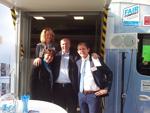 September 2013 – Ex-Fußballmanager Rainer Calmund schaute vorbei - und viele andere Besucher, die unser Jobmobil auf der Hannover-Messe entdeckten und sich für die Entwicklungen des Personalrekrutings interessierten. „Eine Messe ist ideal, um sich als Unternehmen vorzustellen, neueste Entwicklungen aufzuzeigen und die Vorbehalte gegen Personaldienstleister zu entkräften“, findet Niederlassungsleiter Jens Brüers.