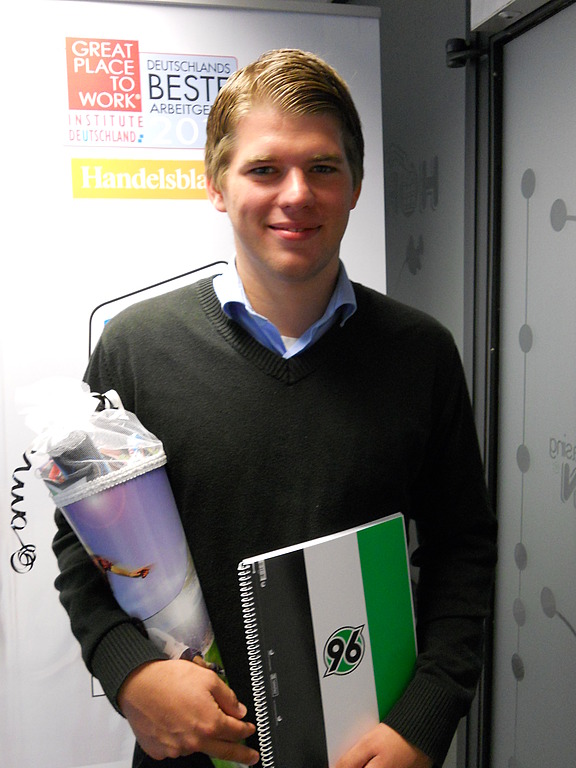 Dieses Jahr ist die Wahl auf Jan Erik Berkenkamp gefallen. Er hat zum 01.09.2012 seine Ausbildung zum Personaldienstleistungskaufmann begonnen, war zuvor aber bereits ein halbes Jahr als Praktikant bei Hofmann. „Dieses Praktikum war eine gute Vorbereitung auf die künftige Ausbildung – bei Hofmann wird man schnell in das Team integriert und an alle Aufgaben herangeführt. So konnte ich bereits nach kurzer Zeit aktiv mitarbeiten und verantwortungsvolle Tätigkeiten übernehmen. Oft hört man ja, dass Auszubildende immer und immer das gleiche machen. Ich bin froh, dass das bei Hofmann anders gemacht wird!“, so der 21-Jährige.