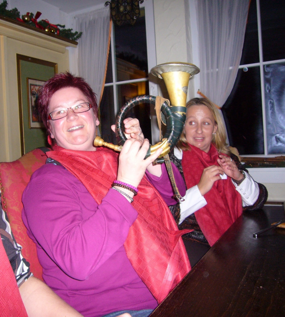 Besonders bei den Rittern kam oftmals Wildbret auf den Tisch. Und ohne Jagdsignal kein Wild. Also führten wir einen kleinen Blas-Wettbewerb durch. Es ist nicht leicht, einem Jagdhorn Töne zu entlocken. Doch manch einer entpuppte sich an diesem Abend als wirkliches Talent. (Es gibt übrigens richtige Wettbewerbe im Jagdhornblasen. Noch ein bisschen üben …) Die ersten drei Plätze wurden gekürt und entsprechend honoriert.