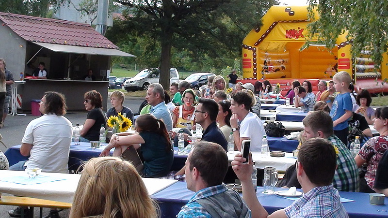 Für die Kleinen, für die diese elektronische Kuriosität noch eine Nummer zu groß war, gab es ein abwechslungsreiches Kinderprogramm: Es wurde gespielt, gebastelt oder einfach nur Quatsch gemacht; die Kleinen wurden geschminkt oder konnten überschüssige Energien an der aufgebauten Hüpfburg austoben. Für angehende Popstars war im Innenraum die PS2 mit Singstar auf Leinwand verfügbar oder Mario Cart auf der Wii. Diese wurden wegen des schönen Wetters dann aber vorrangig erst am Abend von den Erwachsenen genutzt, „Karaoke-like“ – wobei so manch verborgenes Gesangstalent entdeckt wurde.
