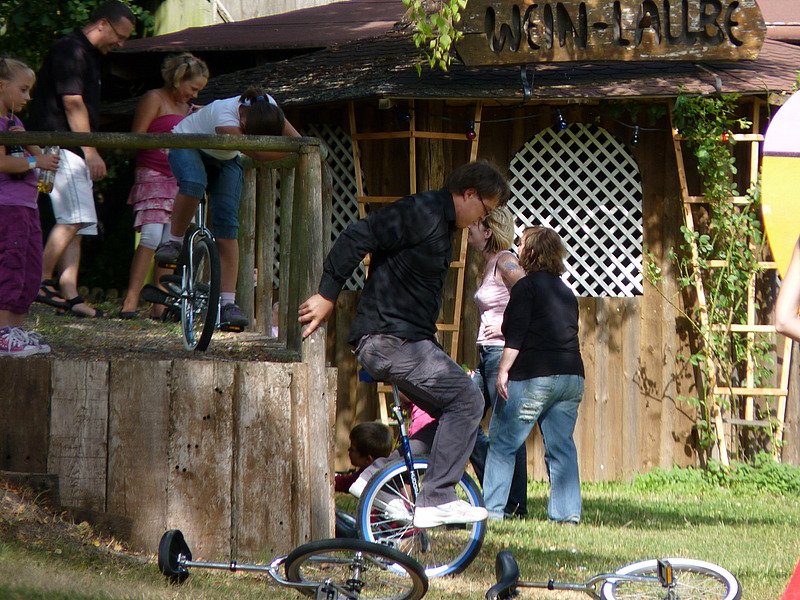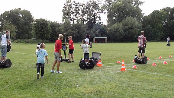 Dank des schönen Wetters konnte sich jeder im Freien nach Lust und Laune im Jonglieren, Seiltanz oder Einradfahren üben oder sich auf den Segways (elektrisch angetriebene Einpersonenfahrzeuge) auf dem benachbarten Sportplatz austoben. Die Segways waren im wahrsten Sinne des Wortes „der Renner“, und so mancher Jungsportler jagte mehrfach in Rekordgeschwindigkeit über die grüne Wiese.