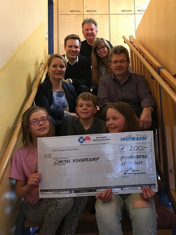Februar 17 - Ob Sportgeräte, Musikunterricht oder gemeinsame Ausflüge – jegliche Aktivitäten kosten nun einmal Geld. Und darum freute sich Dorfleiter Wolfgang Hodbod sehr über die 200-Euro-Spende des Hofmann-Teams. „Wir hatten nicht nur einen Spendenscheck bei unserem Besuch dabei, sondern auch einige leckere Faschingskrapfen“, erzählt Personaldisponentin Alexandra Schmid-Hofstätter. Und die wurden gemeinsam mit den Kindern „genüsslich verputzt“.
