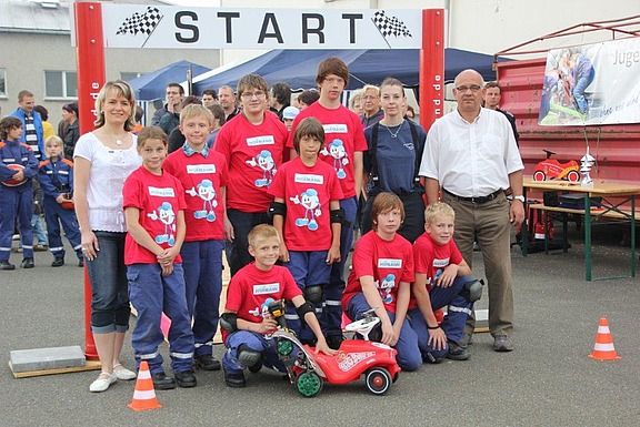 Juni 12 - Brandschutz und Gas geben, ist das denn kein Widerspruch? Keinesfalls, denn in diesem Fall ging es eher ums begeisterte „Gummi-Geben“. So ging das jugendliche Brandschutzteam aus Gospersgrün zusammen mit weiteren sieben Jugendfeuerwehrteams mit ihren quietschroten Bobby-Cars im Juni eifrig an den Start. Das Beste dabei: Die eigentlich nur für Fußantrieb gedachten Spielzeug-Boliden durften vorab mit Akkuschrauber aufgerüstet werden. Dies brachte so manch kleinem Rennsemmelfahrer gerade in den Kurven so manche Schrecksekunde ein - und so waren geschicktes Gas-Geben und Austarieren von Geschwindigkeiten gefragt. Dennoch ging alles spurlos an den Teilnehmern vorüber: Sicher mit Helm, Knie- und Ellbogenschonern ausgerüstet konnten die Jungsportler mit Feuereifer High-Speed aufnehmen und untereinander ihre Fahrkünste messen.