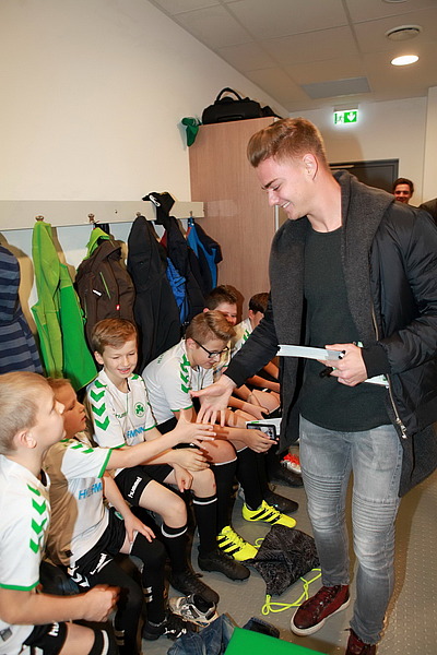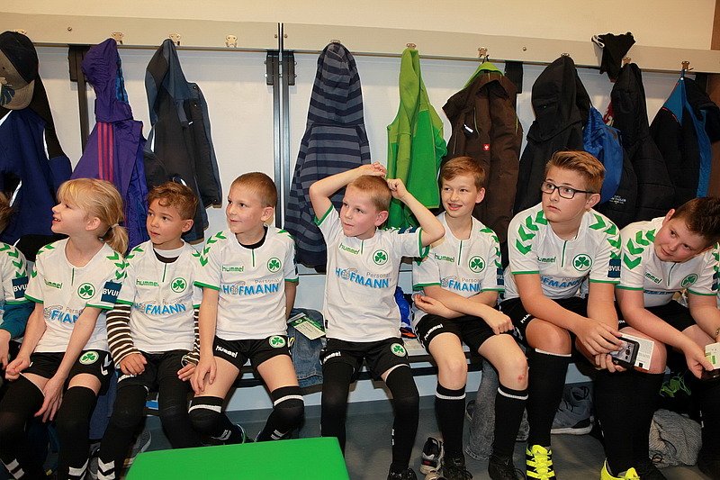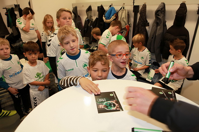 Oktober 17 - Welcher kleine Fußballfan wünscht sich nicht, einmal die Profis zu treffen und mit ihnen auf’s Spielfeld einzulaufen? Den Hiltpoltsteiner Kids wurde dieser Wunsch erfüllt, dank der Sponsorin der Spielvereinigung Greuther Fürth Ingrid Hofmann. Da sie eng verbunden ist mit ihrem Heimatort, wollte sie diesen Wunsch der kleinen Fußballfans erfüllen und ermöglichte ein Treffen in der Umkleidekabine der Fußballer, einschließlich Autogrammstunde und Zeit für gemeinsame Fotos. Und selbstverständlich durften die Kinder mit einlaufen.