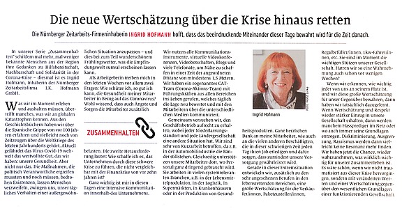 Als Arbeitgeberin treiben mich in den letzten Wochen vor allem zwei Fragen: Wie schütze ich so gut ich kann die Gesundheit meiner Mitarbeiter in Bezug auf das Corona Virus? Wohl wissend, dass auch Ängste und Sorgen die Mitarbeiter zusätzlich belasten. Die zweite Herausforderung lautet: Wie schaffe ich es, das Unternehmen durch diese schwere Krise zu führen, die nicht vergleichbar mit der Finanzkrise von vor 10 Jahren ist?