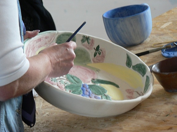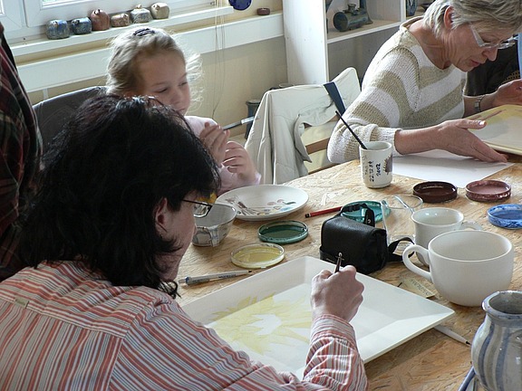 Oktober 08 - Man glaubt gar nicht, wie viele Menschen eigentlich künstlerisch begabt sind. Doch viele lassen diese Fähigkeiten brach liegen. Grund genug für das Rostocker Team, seine Kunden in die Keramikwerkstatt von Heike Hünniger in Rövershagen einzuladen. „Dort hatten wir die Möglichkeit, Keramik selbst zu bemalen und zuzusehen, wie getöpfert wurde, d.h. Frau Hünniger hat uns vorgeführt, wie Tassen, Schalen, Krüge etc. aus Ton hergestellt werden“, erzählt Gabriele Klink.