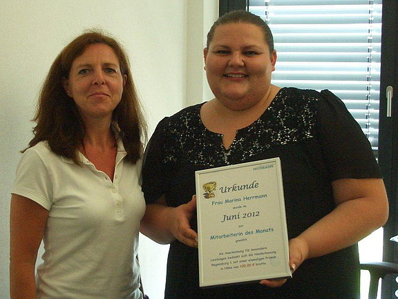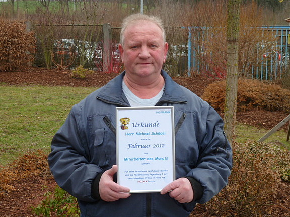 2012 - Um ihren Mitarbeitern für ihr Engagement und ihre Zuverlässigkeit zu danken, zeichnet das Regensburger Team jeden Monat einen Mitarbeiter für seine besonders guten Leistungen aus – mit einer Urkunde und einer Prämie in Höhe von hundert Euro. Teamassistentin Katrin Kult: „Michael Schädel gehört z. B. dazu. Werte wie absolute Zuverlässigkeit und hohe Leistungsbereitschaft stehen bei ihm an erster Stelle. Er macht keine großen Worte; er macht einfach und das ausgesprochen gut!“