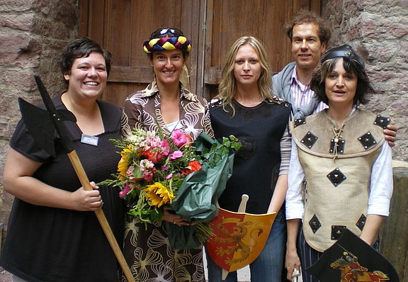 Die Preisverleihung stand bereits am Ende eines Tages, der am Morgen in Miltenberg begonnen hatte, wo Kunden und Mitarbeiter mit ihren Familien das Schiff Astoria bestiegen hatten, um gemeinsam nach Wertheim zu fahren. Dort angekommen wurde die Burg erklommen, auf der zwar nicht der Burgherr, dafür aber der Regionalgebietsleiter Peter Fritzsche die Gäste erwartete. Den alten Gemäuern der Burg und dem Motto des Tages entsprechend bedankte er sich launig und unterhaltsam bei seinem Niederlassungsteam für fünf Jahre erfolgreiche Zusammenarbeit: „Mutig wie die Ritter stürzen sie sich immer wieder ins Tagesgeschäft, betreuen charmant wie die Burgfräulein Kunden und Mitarbeiter und achten auf reibungslose Abläufe wie die Burgwächter“, erklärte er und schlug seine Mitarbeiter zwar nicht zu Rittern, verpasste ihnen aber zumindest das entsprechende Outfit. Es folgte ein deftiges Mahl und der Weg zurück auf’s Schiff. „Es ist ein schönes Gefühl, wenn man am Ende einer Veranstaltung so herzliche und positive Resonanz bekommt. Da wir eine Kindergärtnerin dabei hatten, die sich ausschließlich um die Kinder kümmerte, konnten die Eltern den Tag wirklich unbeschwert genießen“, erzählt die Büroverantwortliche Silvia Brühl.