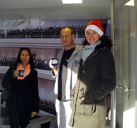 Dezember 2013 - Anfang Dezember nahm das Niederlassungsteam mit dem Hofmann-Jobmobil Fahrt auf in Richtung Kundenunternehmen, um dort den arbeitenden Kollegen schmackhaften Weihnachtspunsch und leckere Plätzchen zu spendieren. Neben einem regen Austausch unter Kollegen, schauten auch andere Interessierte oder „alte Bekannte“ vorbei.