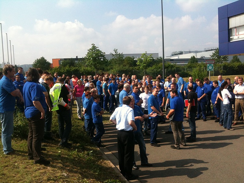 Dank dieser hervorragenden Vorbereitung verließen alle Mitarbeiter bei Ertönen des Signals sofort ihre Maschinen und fanden sich nach 3 Minuten und 50 Sekunden am Sammelplatz ein.