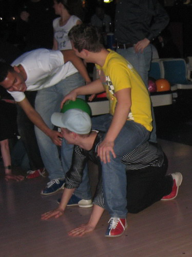 Dezember 2008 - Mit einem normalen Bowlingabend wollten sich die Münchner nicht zufrieden geben. Es sollte schon etwas besonderes sein. Darum trafen sich die Hofmann-Mitarbeiter im Dezember beim Hollywood Superbowling, wo samstags immer unter erschwerten teilweise sogar akrobatischen Bedingungen gebowlt wird. Ein nettes Buffet sorgte für die nötige Stärkung, damit auch das „Kugelstemmen“ funktionierte.
