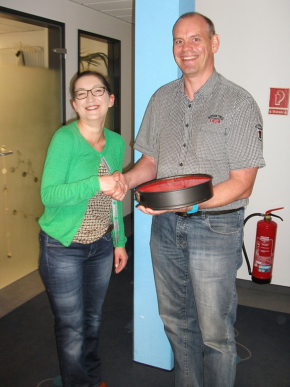 Denn als Dankeschön überraschte der ehemalige Kollege mit einer selbst gebackenen Erdbeertorte zum Abschiedsfrühstück, die sich das Niederlassungsteam richtig schmecken ließ.