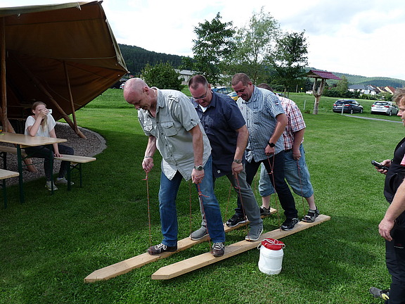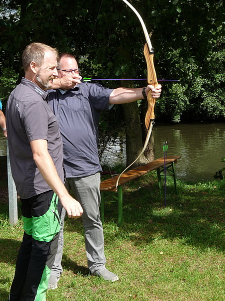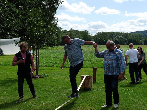 Mit einer Kanufahrt auf der Werra ging es los. Und da die Gäste beim Paddeln sehr geschickt waren, ging auch keiner über Bord. Sportlich ging es dann weiter, u.a. mit einer Olympiade, bestehend aus Bogenschießen, Gaudiski, Torwandschießen und Slackline. Und da es keine Olympiade ohne Gewinner gibt, wurden diese auch ausgezeichnet.