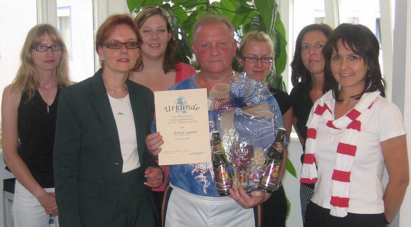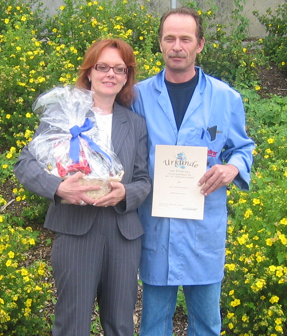 Juli 08 - „Die Zeitarbeitbranche ist gekennzeichnet durch sehr viel Bewegung und Veränderungen. Für uns als Verwaltungskollegen ist es ein sehr schönes Gefühl, Zeitarbeitmitarbeiter beschäftigen zu können, die ungeheuer zuverlässig sind und auf die wir uns verlassen können“, erzählt Niederlassungsleiterin Alexandra Bencinic. „Darum bedanken wir uns ganz herzlich bei Anatoli Bachmatow, Jürgen Oehme und Michael Schädel für eine tolle Zusammenarbeit.“ Diesem Dank schließt sich das gesamte Regensburger Team an und hofft natürlich, dass sich die Zusammenarbeit über viele weitere Jahre fortsetzen lässt.