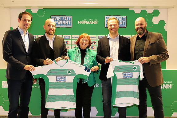 Das gemeinsame Bekenntnis von Hofmann Personal und den vier Profisportvereinen für Vielfalt und gegen Ausgrenzung, Diskriminierung und Rassismus geben der Initiative „Vielfalt gewinnt“ ein besonderes Gewicht. Und das geben sie zum Ausdruck: