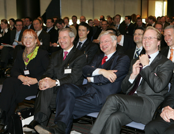 Der diesjährige Unternehmertag in Frankfurt stand unter dem Motto "Wachstum unternehmen". Unterschiedliche Unternehmer stellten die Entwicklung ihrer Firmen vor. Unser Vortrag beschäftigte sich mit dem Thema "Mehr Wachstum durch flexible Personalpolitik". Zugegen war auch der hessische Ministerpräsident Roland Koch, der sich mit den Forderungen der Jungunternehmer nach einem schnelleren Subventionsabbau auseinander setzte und dem Mindestlohn eine Absage erteilte.