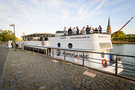 Route der Industriekultur Rhein-Main, bei einer Schifffahrt entlang des Mainufers, zu der wir unsere Kunden einluden.