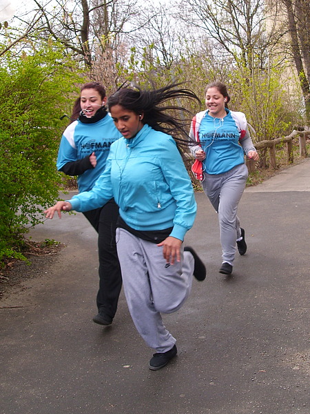 Selbstverständlich waren zwei Mitarbeiter der Berliner Niederlassung ebenfalls bei dem Marathon vor Ort. Auch wenn es nicht der perfekte Tag für einen langen Lauf über das Gelände der Schule zu sein schien, waren beide – Jessica Mewis und Ingo Rosenthal – hin- und mitgerissen von dem Engagement der dreizehn Schüler. Kurzentschlossen zogen auch sie die Jogginghosen, Laufschuhe und T-Shirts an und liefen – mehr oder weniger sportlich – ihre Runden. Natürlich war es ein wenig deprimierend, immer wieder von dem einen oder anderen Runde für Runde überholt zu werden – doch das Wissen um den guten Zweck und das Training für den Körper hinterließen bei allen Teilnehmern ein grandioses Gefühl der Begeisterung.