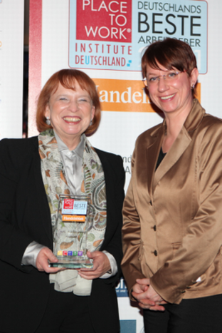 Februar 11 – Hofmann Personal gehört auch in diesem Jahr zu Deutschlands 100 besten Arbeitgebern und wurde am 23. Februar in Berlin dafür ausgezeichnet. Durchgeführt wird der Wettbewerb „Beste Arbeitgeber Deutschlands“ vom Great Place to Work Institute in Kooperation mit der Initiative Neue Qualität der Arbeit (INQA) und dem Bundesministerium für Arbeit und Soziales. Als Bewertungsgrundlage für die hundert besten Arbeitgeber dient dem Institut eine anonyme Befragung der Mitarbeiter zu den Themen Fairness und Respekt, die Identifikation der Beschäftigten mit ihren Aufgaben und ihrem Arbeitgeber wie auch der Teamgeist. Mit einbezogen werden die Programme und Maßnahmen, die das Unternehmen im Personalbereich durchführt. „Diese positive Bewertung seitens unserer Mitarbeiter freut mich sehr, zumal die Arbeitsbelastung im letzten Jahr nicht gering war. Der Aufschwung wurde von allen natürlich sehr begrüßt, hat den Mitarbeitern aber auch einiges abverlangt. Handlungsbedarf gibt es selbstverständlich trotzdem“, kommentiert die Geschäftsführerin Ingrid Hofmann das Ergebnis. „Wir nehmen an Wettbewerben teil, da man im Vergleich mit anderen Unternehmen deutlicher erkennt, wo die eigenen Stärken und Schwächen liegen. Außerdem lasse ich mich gerne von guten Ideen anderer Unternehmen inspirieren.“ Staatssekretär Ralf Brauksiepe, der die Urkunden übergab, lobte noch einmal den Mut der Unternehmen, sich der Herausforderung einer anonymen Mitarbeiterbefragung zu stellen.