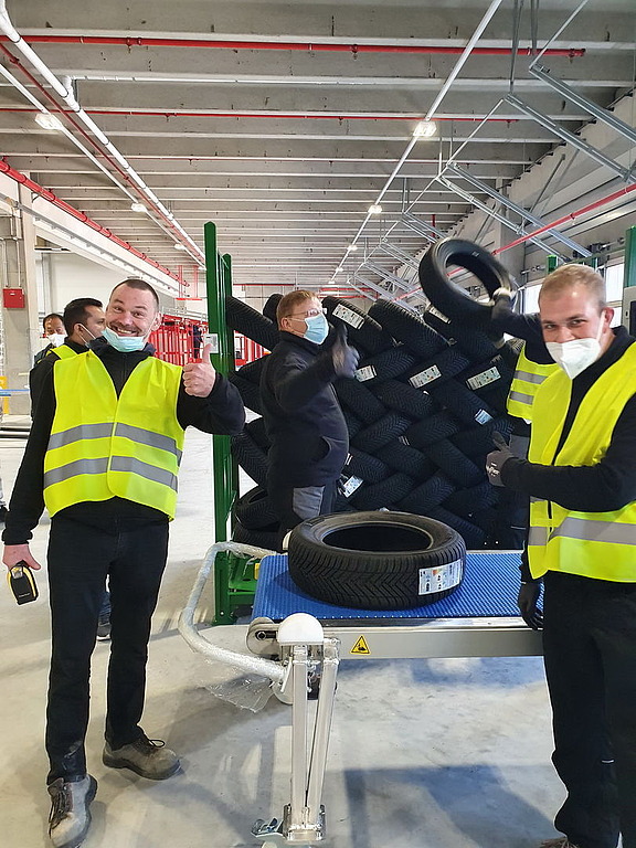 Fast 30 Mitarbeiter sind inzwischen vor Ort. In Zusammenarbeit mit einem Bildungsträger wurden sie auf ihren Job vorbereitet. „Es gibt ja noch keine Kollegen in der Halle, die die korrekten Arbeitsabläufe im Umgang mit den Reifen zeigen können. Darum ist es so wichtig, dass wir professionelle Unterstützung haben. Das betrifft vor allem die richtige Körperhaltung, um die Gesundheit zu schützen“, erklärt Personaldisponentin Linh Dong.