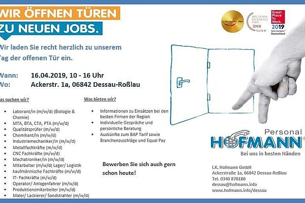 Informieren Sie sich über Ihre Karrierechancen. Wir laden Sie ein zum Tag der offenen Tür am 16. April 2019 von 10.00 Uhr bis 16.00 Uhr.