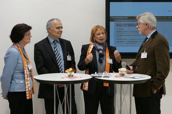 Diskussionsrunde am Stand der Bundesvereinigung der Deutschen Arbeitgeberverbände (BDA) auf dem Ökumenischen Kirchentag in München