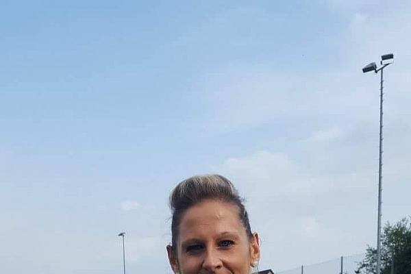 Hofmann-Mitarbeiterin Steffi Dittrich war beim Schutzengellauf auf dem Sportplatz von Siebenlehn des Vereins Mukoviszidose e.V. dabei