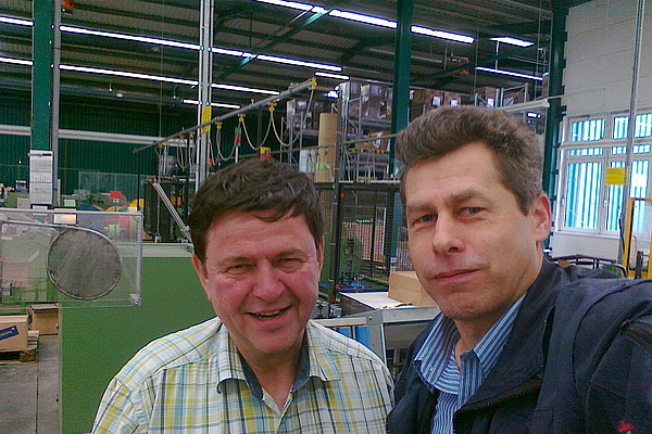 Überraschungsbesuch bei dem ehemaligen Hofmann-Mitarbeiter Frank Rotter, der sich in den Ruhestand verabschiedet