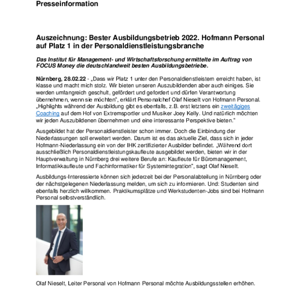 Im Fall der Publikation freuen wir uns über die Zusendung eines Belegexemplars oder eines Links an unsere Pressestelle.